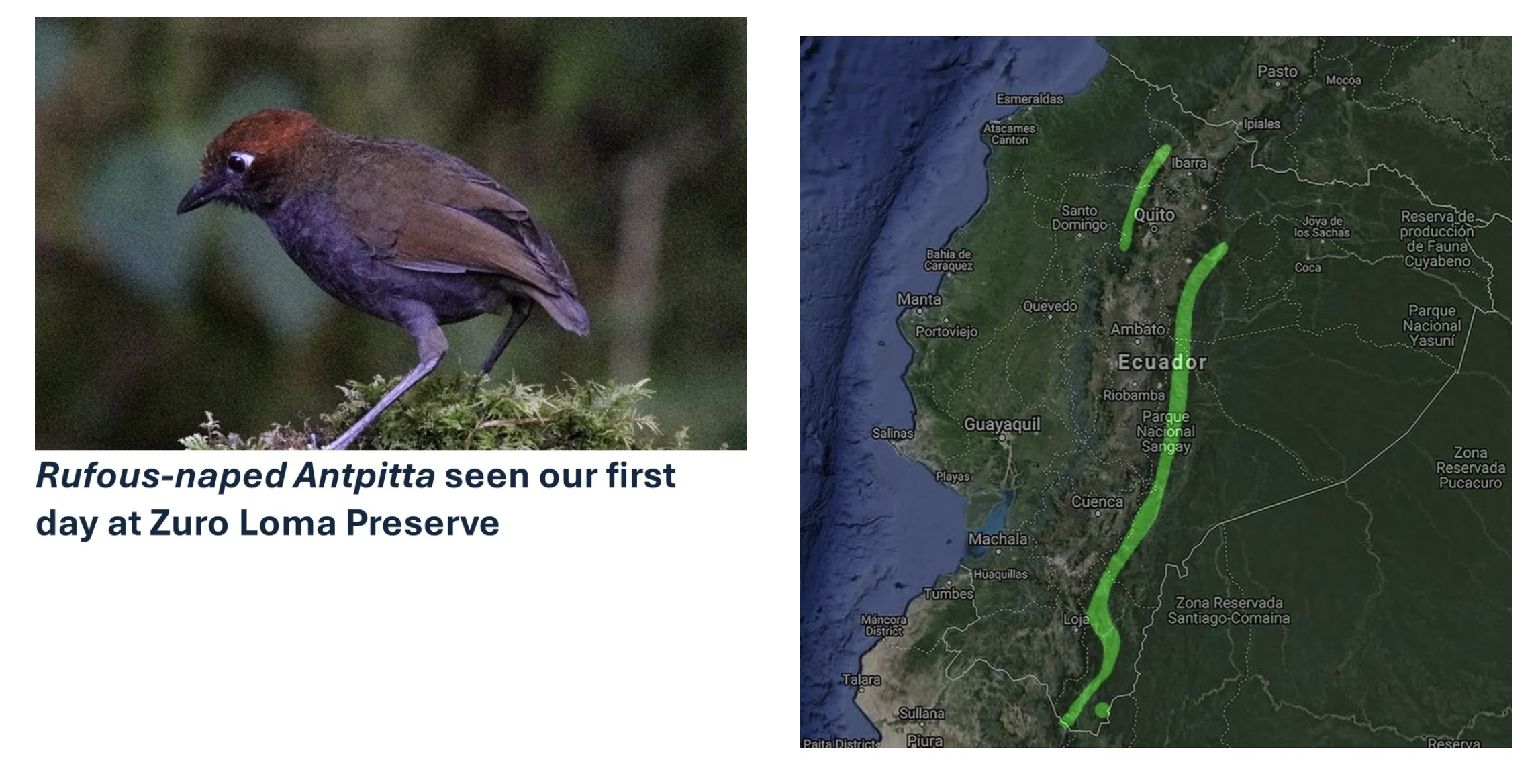 Below, I have picked a few of the Antpittas we saw and posted their range map to give you an idea of 1. how unusual they are and 2. to demonstrate the importance of elevation and location in relation to the Andes Mountain for the various species.