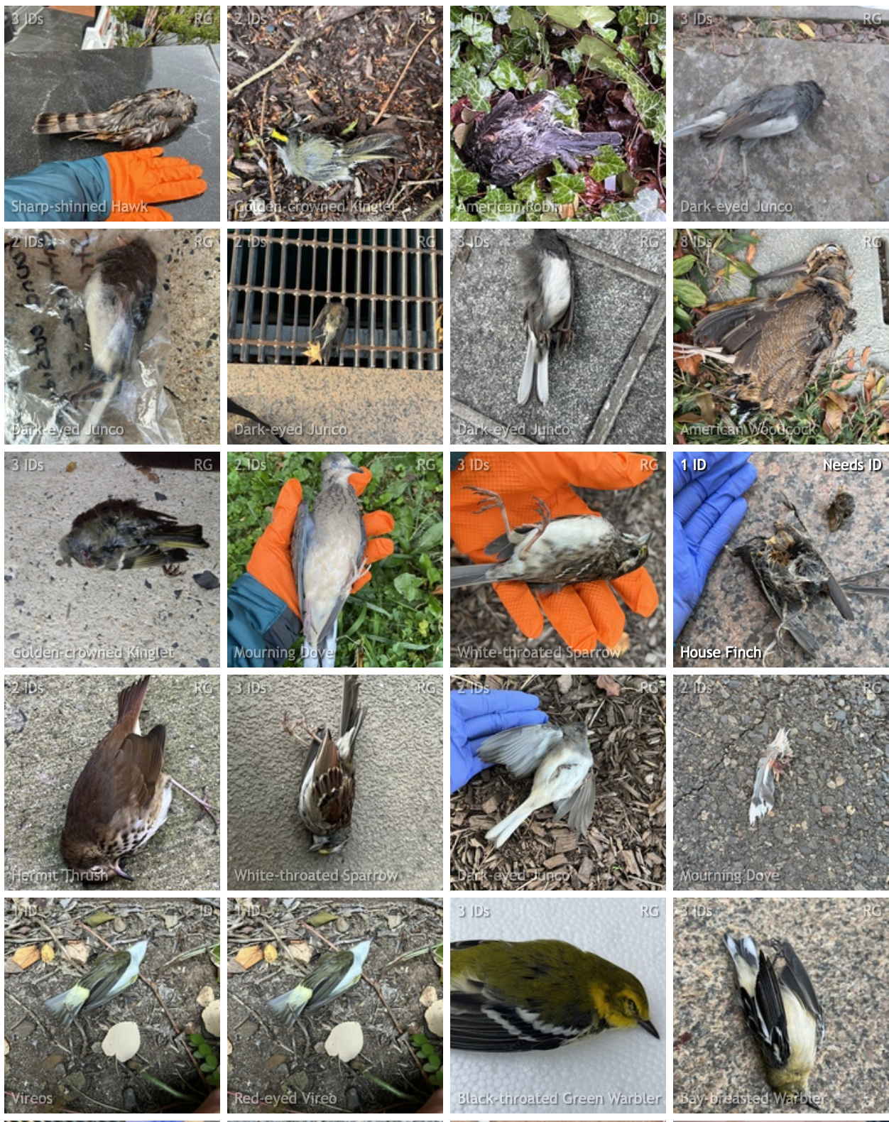 See below all of these factors effectively working together to cause significant bird collisions at Comcast Technology Center in Philly. Photo Credit: Stephen Maciejewski. The last picture is a Bird Safe Philly volunteer Christy David trying to collect an injured bird (I think it is a stunned white-throated sparrow).